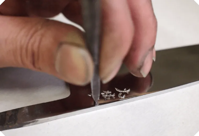 口金は刃のデザイン、鏡面磨き仕上げに合わせて